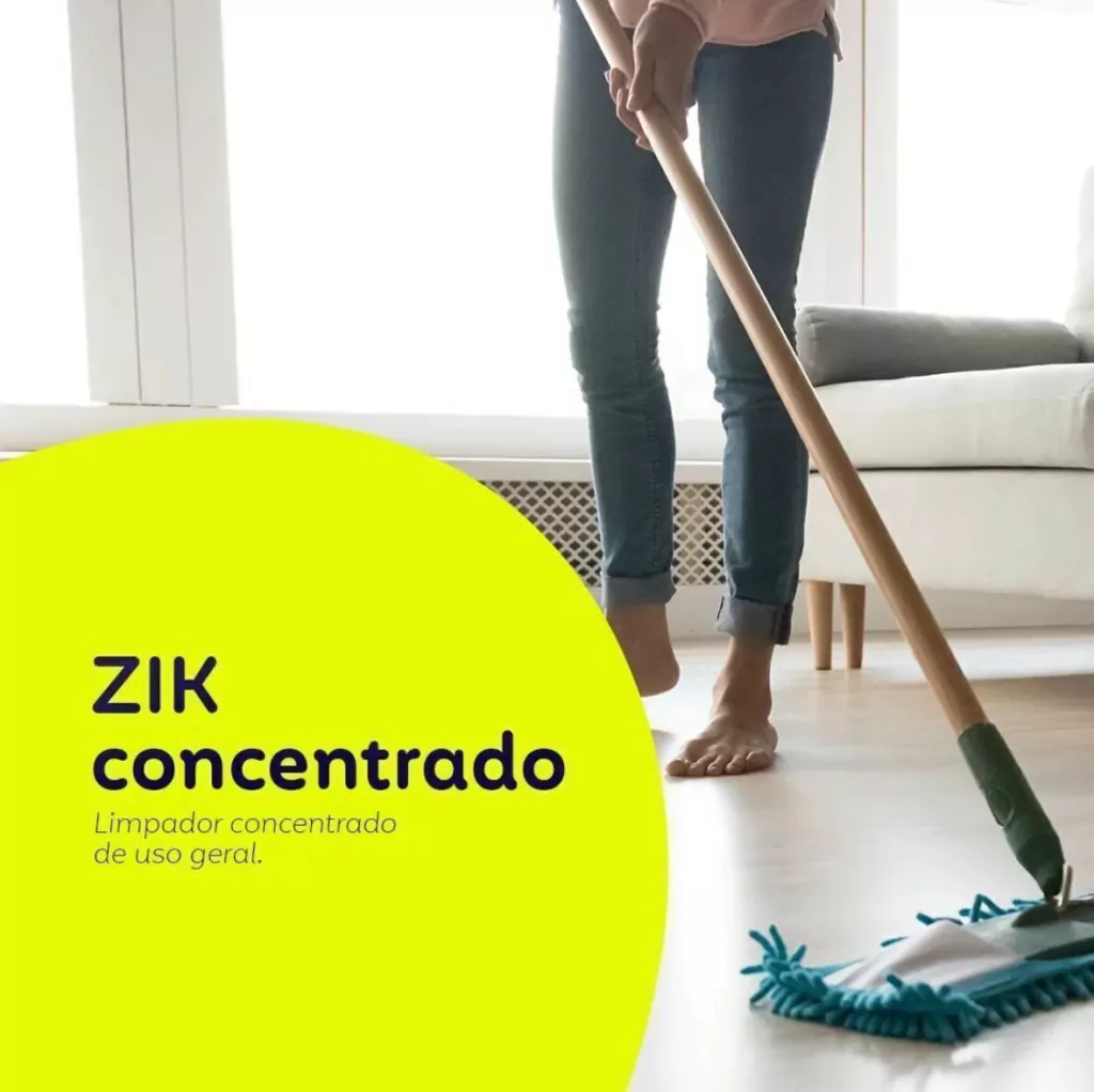 Para uso em pisos de cerâmica, paviflex, tacos e outras superfícies que absorvem o produto, recomenda-se diluir 1 (um) litro de ZIK CONCENTRADO para até 50 (cinquenta) litros de água.